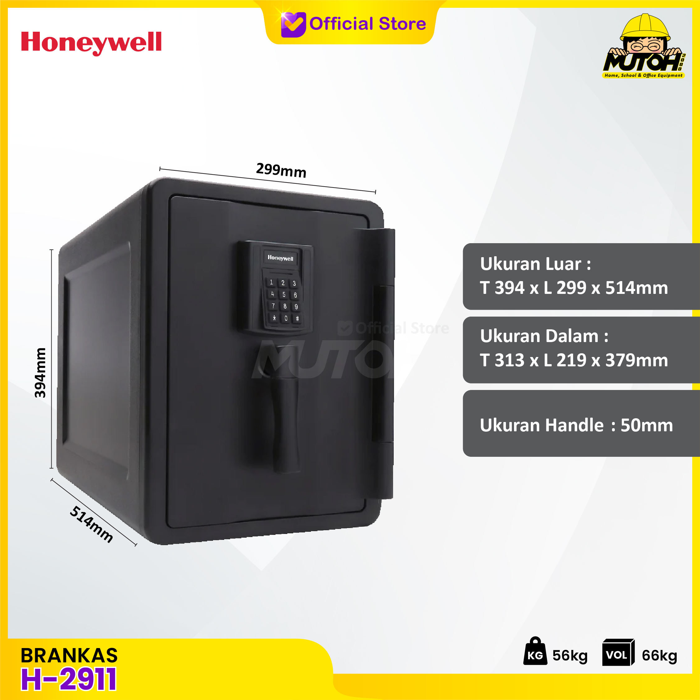 Specification: BRANGKAS BRANKAS DIGITAL HONEYWELL 2911 TAHAN API AIR BER-GARANSI 7 TAHUN
