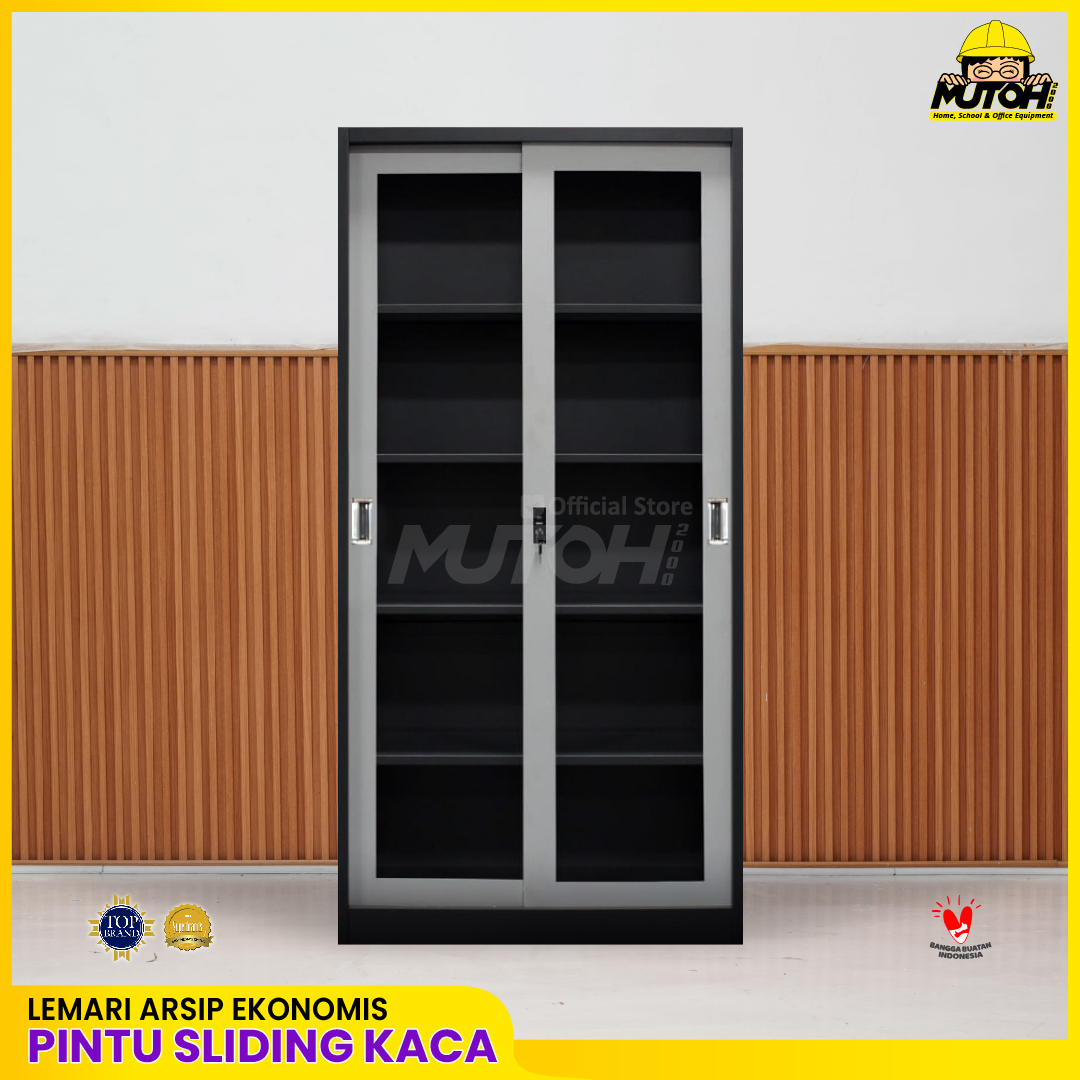 Lemari arsip besi Murah 2 pintu geser sliding kaca | MUTOH EKONOMIS