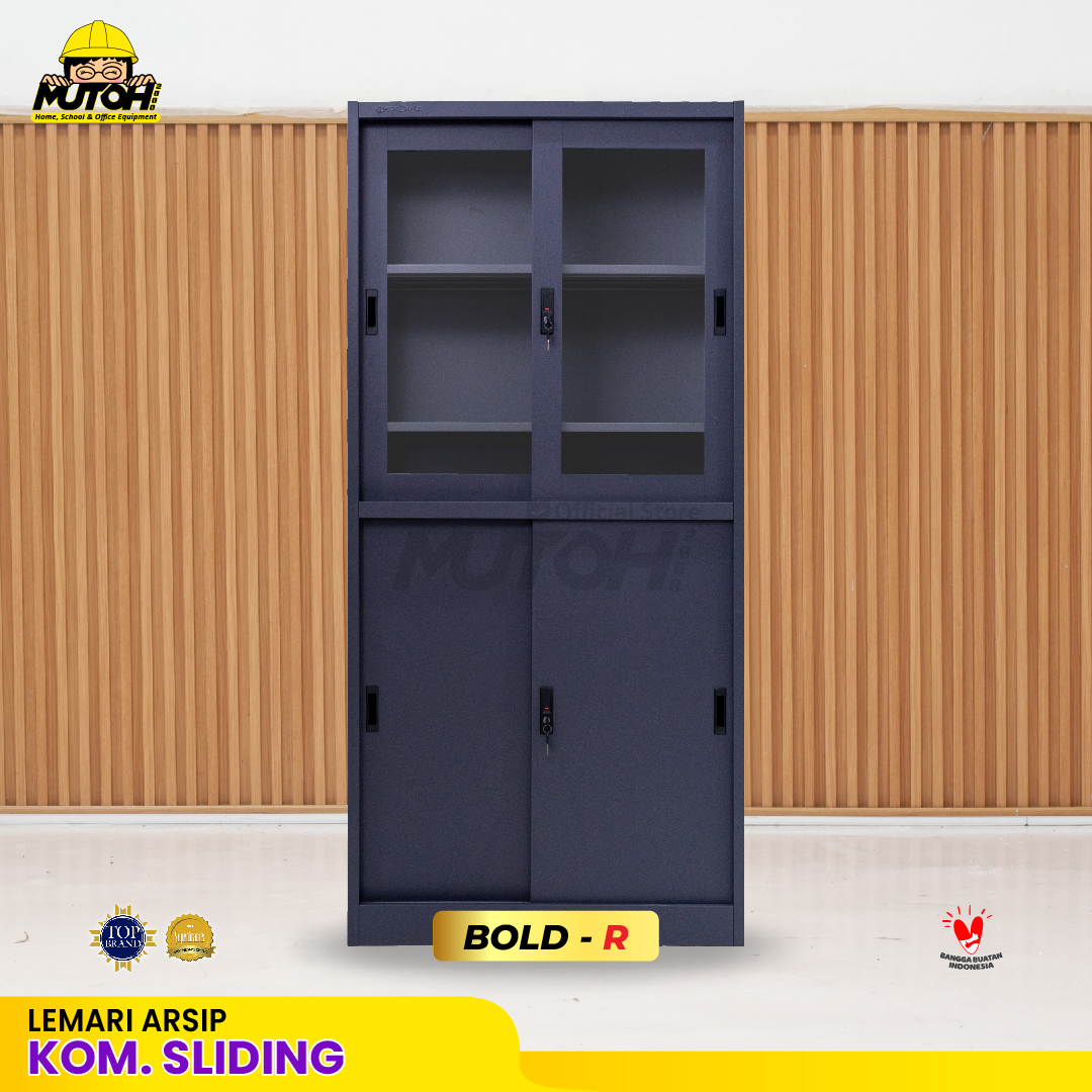 Lemari besi arsip 2 pintu kombinasi sliding abu tua MUTOH BOLD