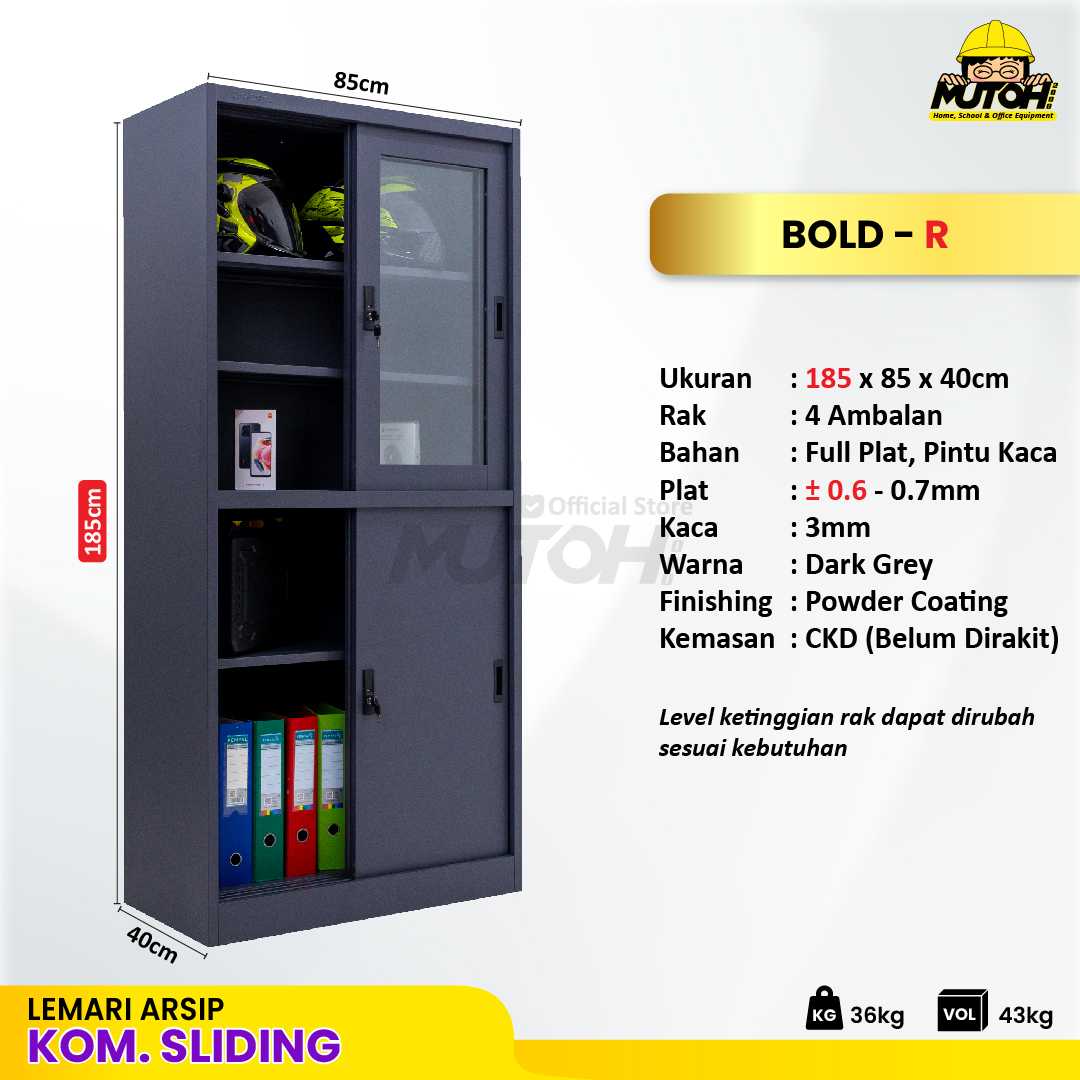 Specification: Lemari besi arsip 2 pintu kombinasi sliding abu tua MUTOH BOLD