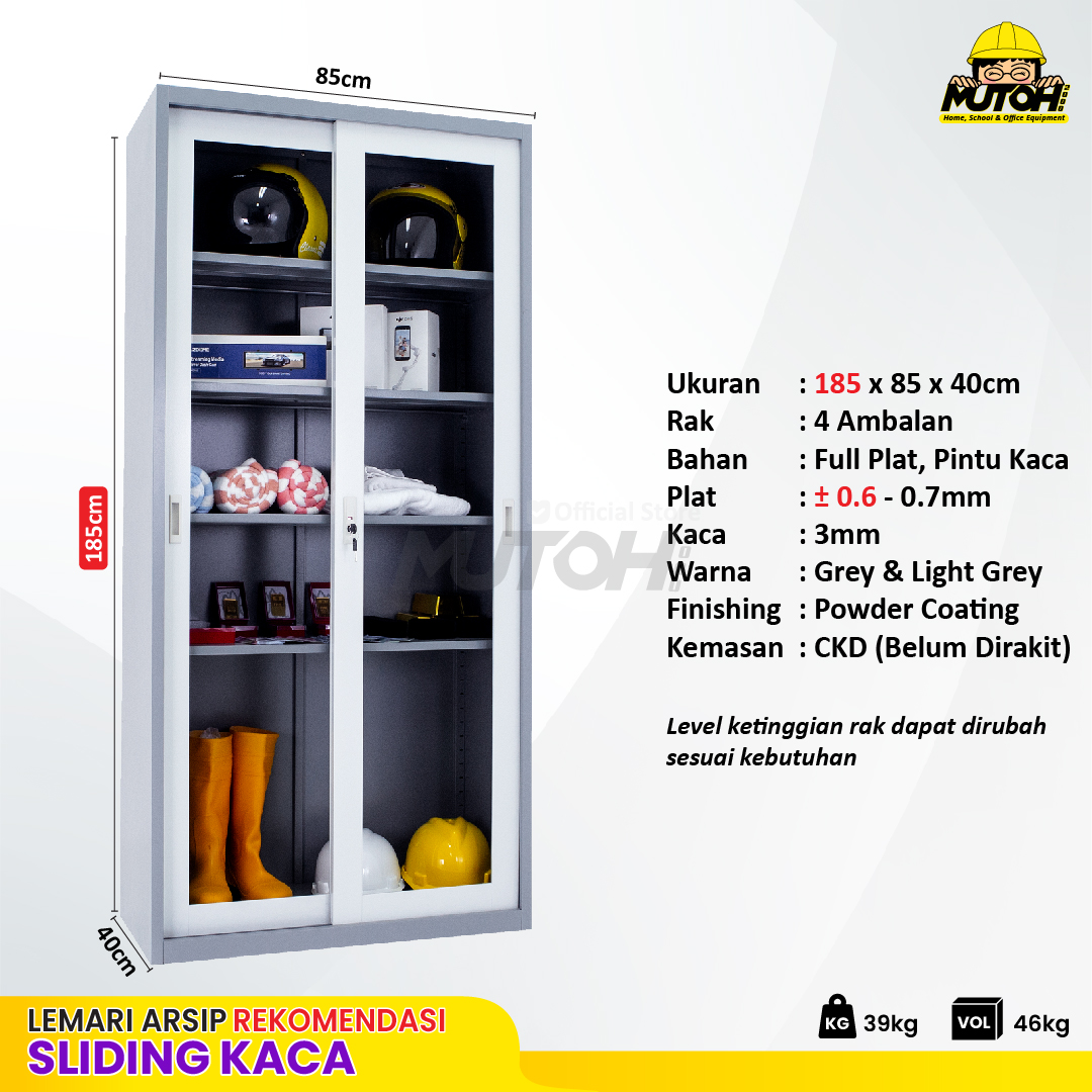 Specification: Lemari arsip besi Rekomendasi | 2 pintu sliding kaca 2 warna MUTOH CURVE
