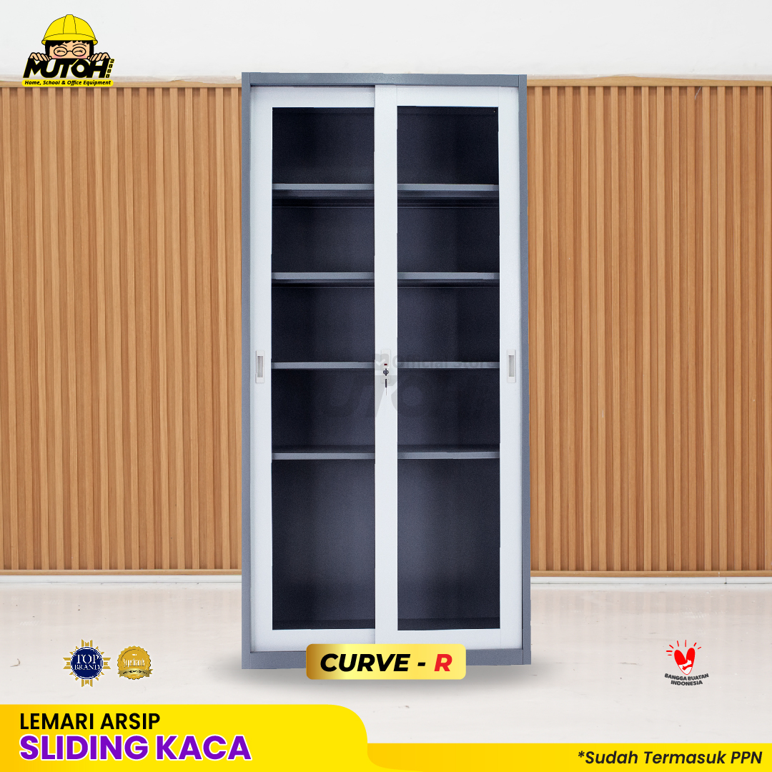 Lemari besi arsip 2 pintu sliding kaca 2 warna MUTOH CURVE