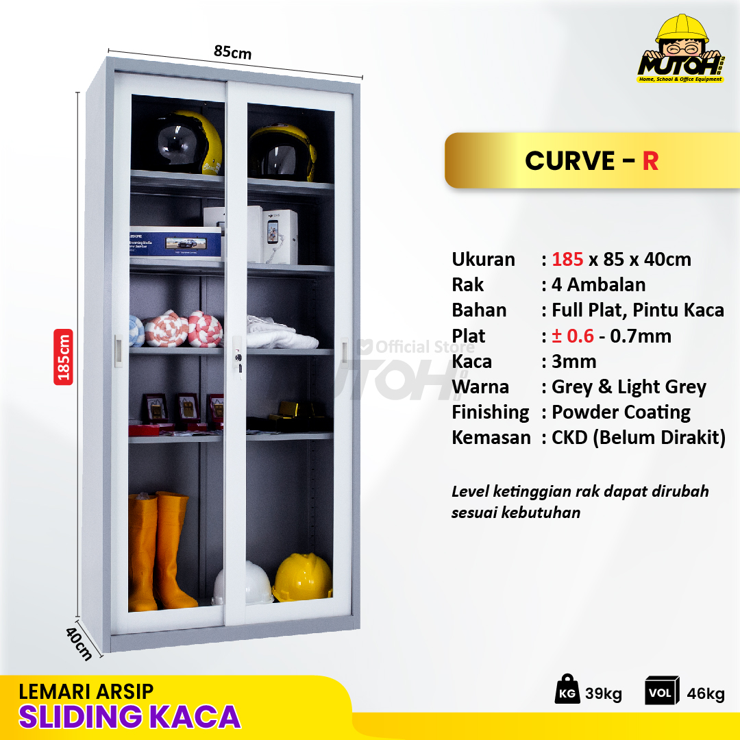 Specification: Lemari besi arsip 2 pintu sliding kaca 2 warna MUTOH CURVE