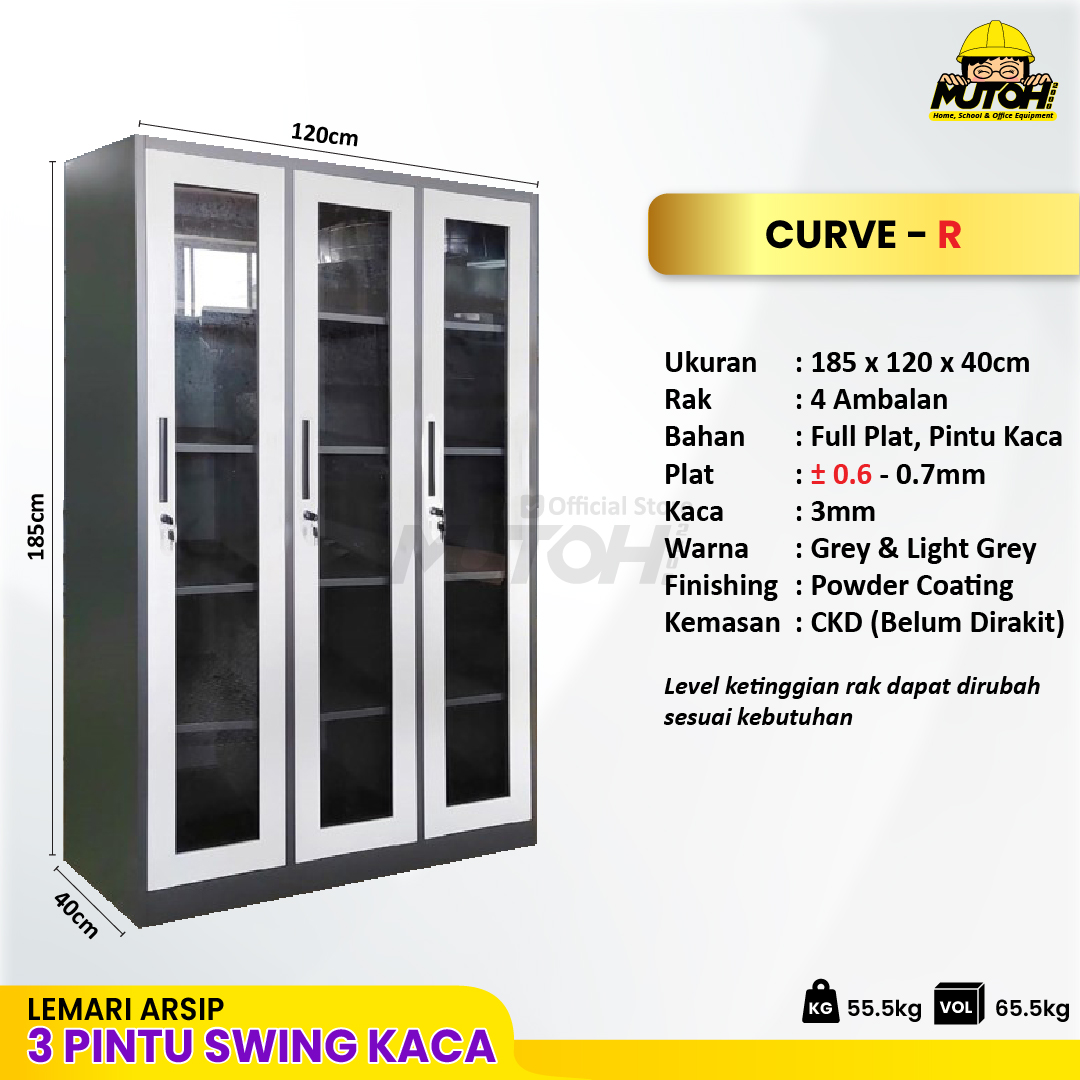Specification: Lemari besi arsip 3 pintu swing kaca 2 warna MUTOH CURVE