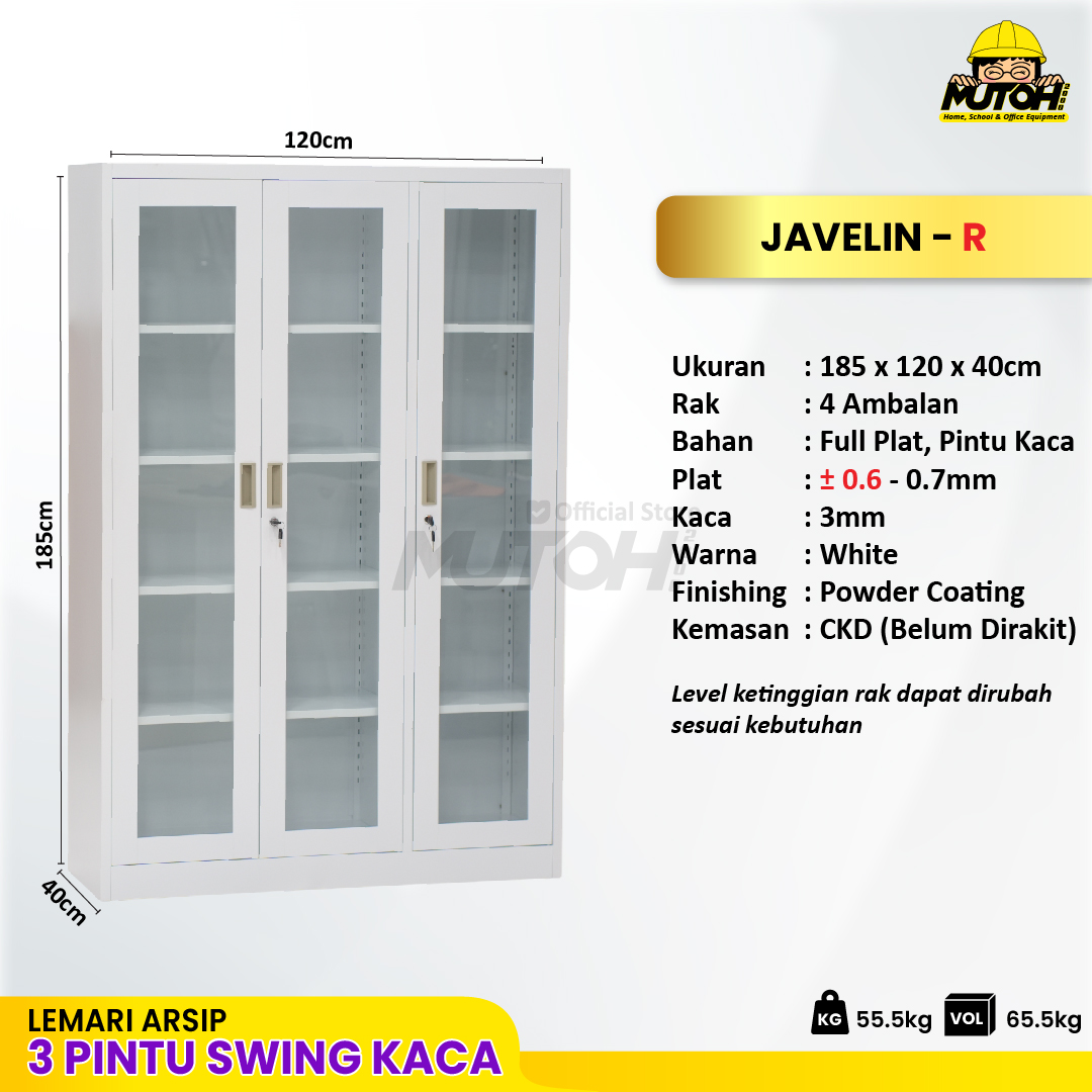 Specification: Lemari besi arsip 3 pintu swing kaca putih MUTOH JAVELIN