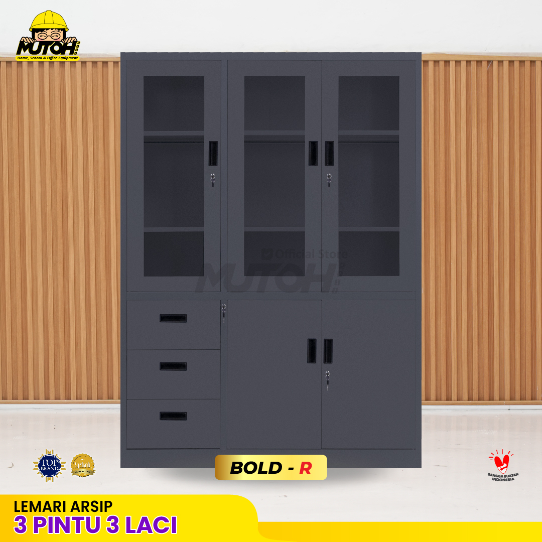 Lemari besi arsip kombinasi 3 pintu 3 laci abu tua MUTOH BOLD
