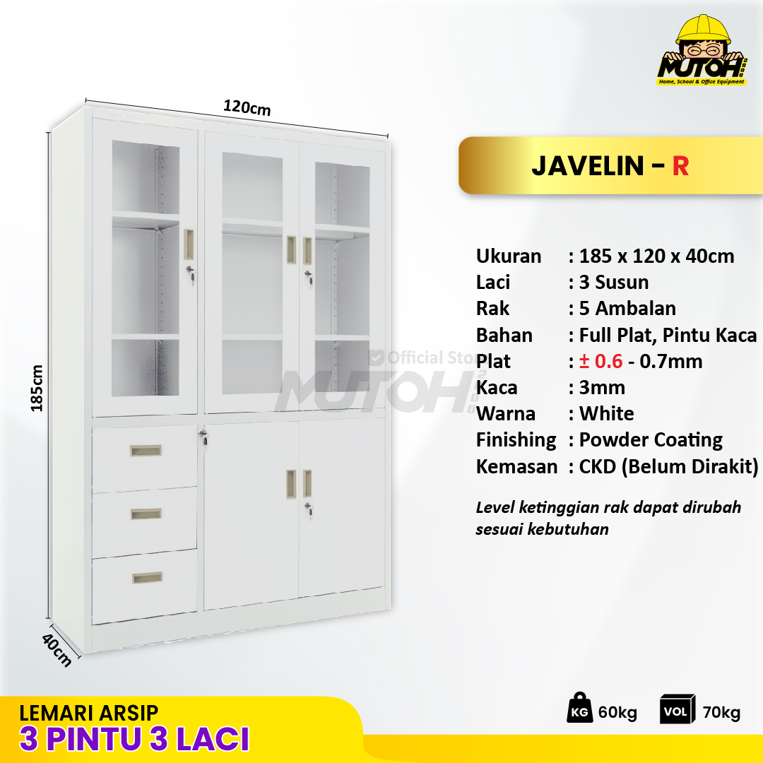 Specification: Lemari besi arsip kombinasi 3 pintu 3 laci putih MUTOH JAVELIN