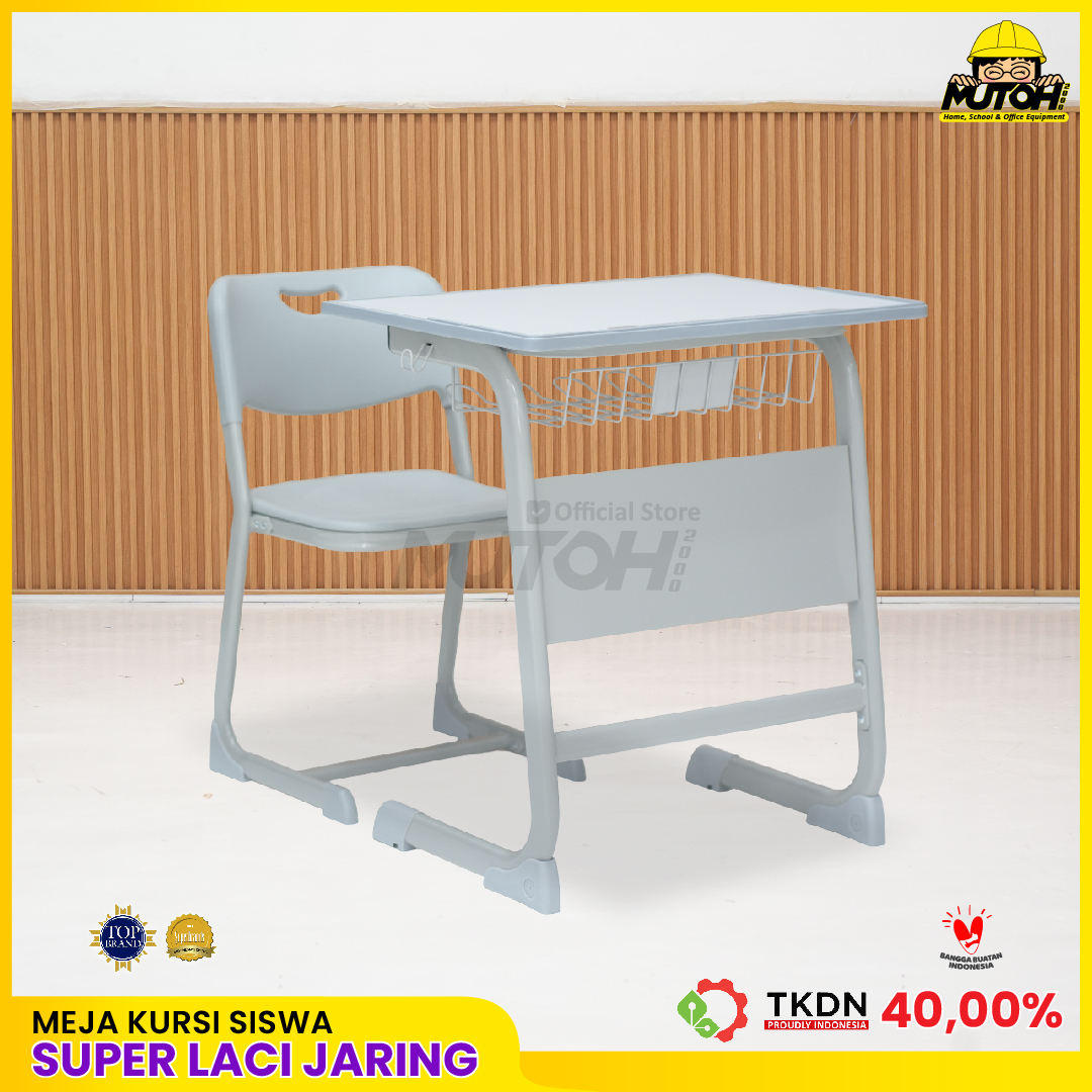 Meja belajar anak meja kursi siswa MUTOH TKDN SUPER LACI JARING