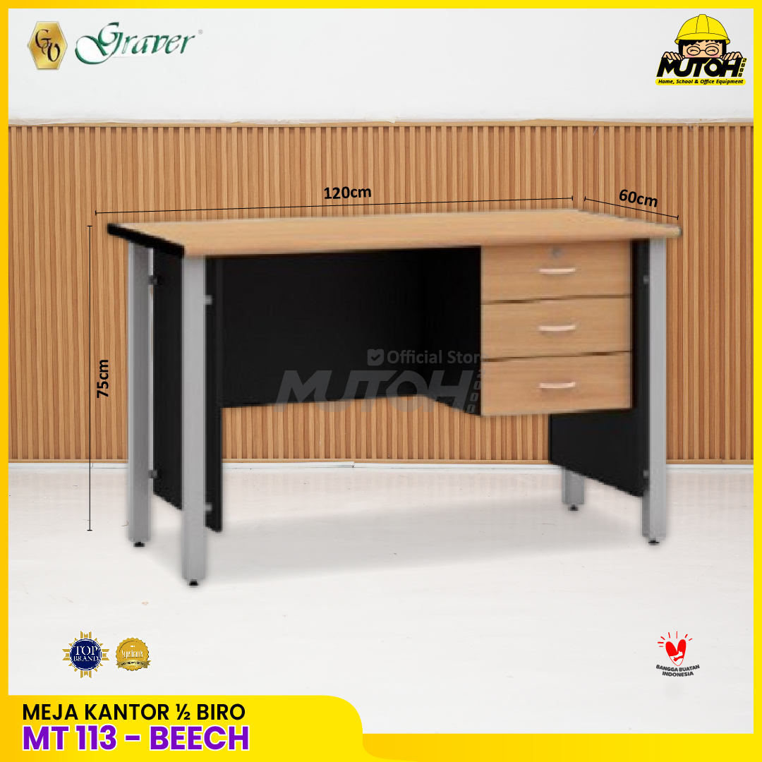 Specification: Meja POPULAR MT-113 Beech meja kerja meja tulis 1/2 Biro kaki besi meja kantor kaki besi 3 laci 120cm